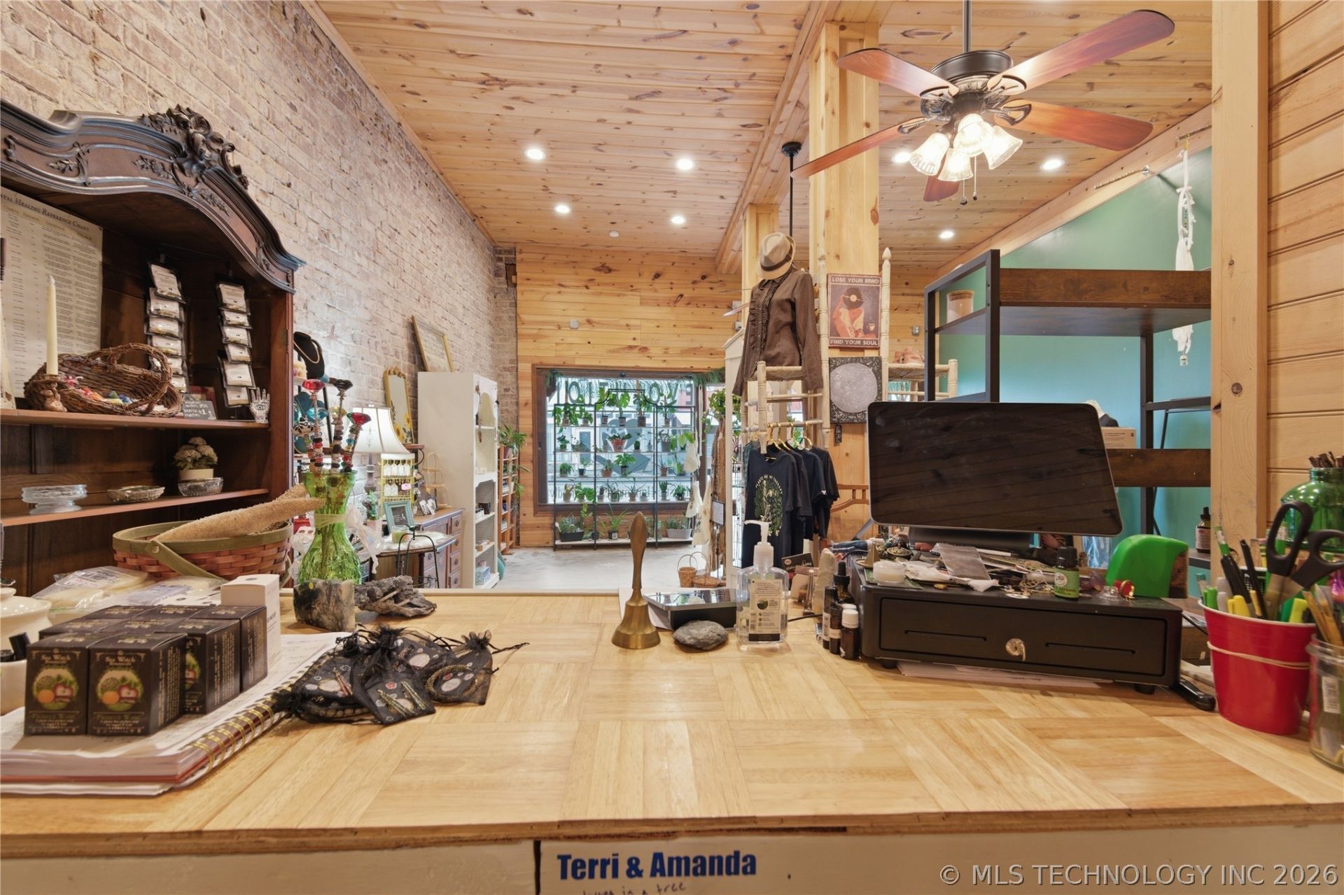 Own a piece of Oklahoma history in the heart of Fort Gibson, recognized as the oldest town in Oklahoma. This unique commercial property, originally constructed in 1906, has been thoughtfully and fully renovated to meet current city code requirements while preserving its historic charm and character. The building offers a rare blend of old and new, featuring fire treated structural wood, a newer HVAC system approximately one year old, and a newer roof with a 25 year transferable warranty issued in 2019 providing long term peace of mind for future ownership. The property is fully electric and serviced by city water. Located in the downtown district, the property benefits from strong community involvement, active Chamber of Commerce support, and approximately 5 to 6 city hosted events annually that drive consistent foot traffic and visibility for local businesses. Additional features include on site parking for approximately 2 to 3 vehicles, an added convenience in a downtown setting. The current owner is offering this property as they look to scale back and transition to a more mobile lifestyle, creating an excellent opportunity for the next owner to step into a well cared for and distinctive commercial space. With its distinctive architecture, updated systems, and prime location in one of Oklahoma's most historic communities, this space is ideal for boutique retail, office, studio, or specialty business use.