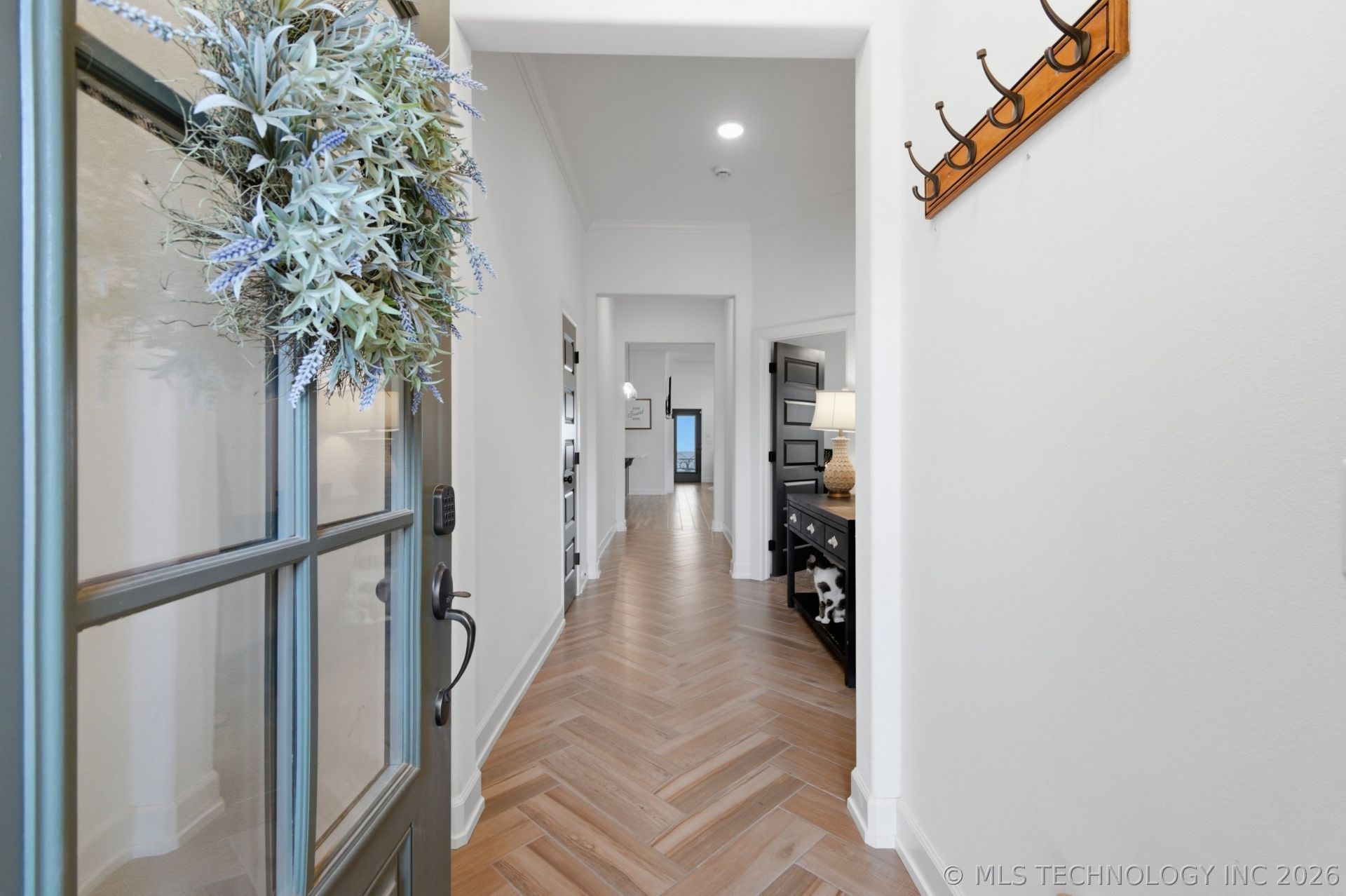 Beautiful SINGLE STORY home featuring a spacious open concept designed for comfortable living and effortless entertaining. The kitchen offers a large center island plus a BUTLER's pantry with additional counter space and serving storage. The split bedroom plan provides privacy, with two secondary bedrooms at the front of the home connected by a Pullman bath with double sinks. Just off the kitchen is a versatile fourth bedroom (or office) with its own private bath, ideal for guests for work-from-home needs. The primary suite is privately situated at the back of the home and features an extra-large walk-in shower and oversized walk-in closet. Additional highlights include a 2.5 car tandem garage, covered back patio, outdoor fireplace, gutters, and a sprinkler system. Located near Forest Ridge Golf Club with extra neighborhood amenities including a resort-style pool, tennis/pickleball courts, fitness center, bistro and Ranch House restaurant. Convenient to Broken Arrow schools, highways, grocery and shopping.