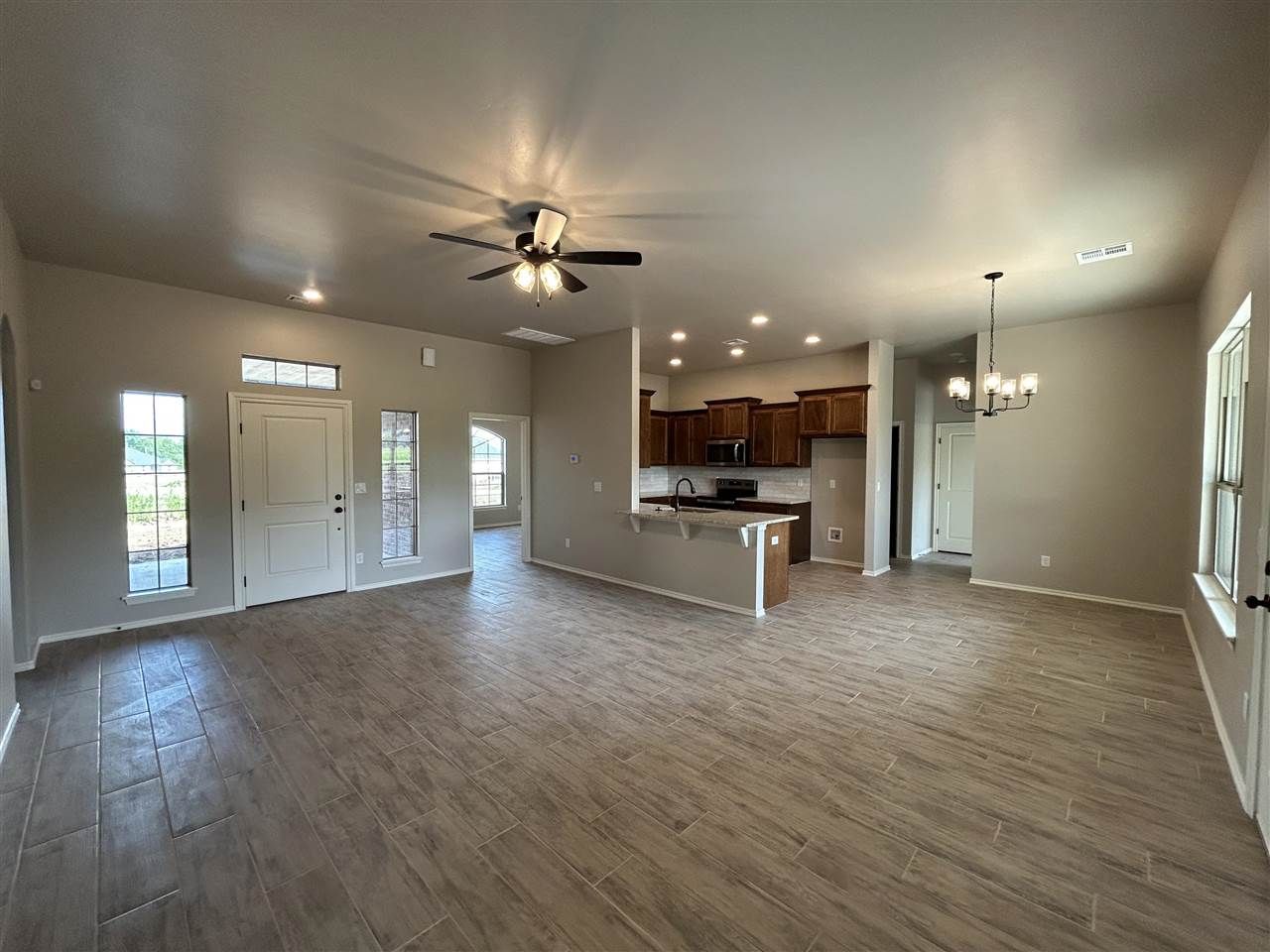 BRAND NEW! Beautiful new-construction 4-bedroom home in the coveted Wagon Trail addition. This home features 3 full bathrooms and a bonus front room that would make an ideal office or 2nd living area. Boasting approx. 2,047 SF and situated on just under an acre lot with covered porch and covered front patio, youll have endless options to spread out and enjoy the quiet area. Stainless steel appliances included - dishwasher, oven/range, built-in microwave. Home also has washer/dryer hook-ups. Dont forget about the oversized 3-4 car garage with 10x8 drive thru bay for easy access from front to back. Tenant responsible for lawncare and all utilities. Pets welcome with additional deposit. Available now through July 28, 2026. No option for renewal. This property has already been rented for August 1st.