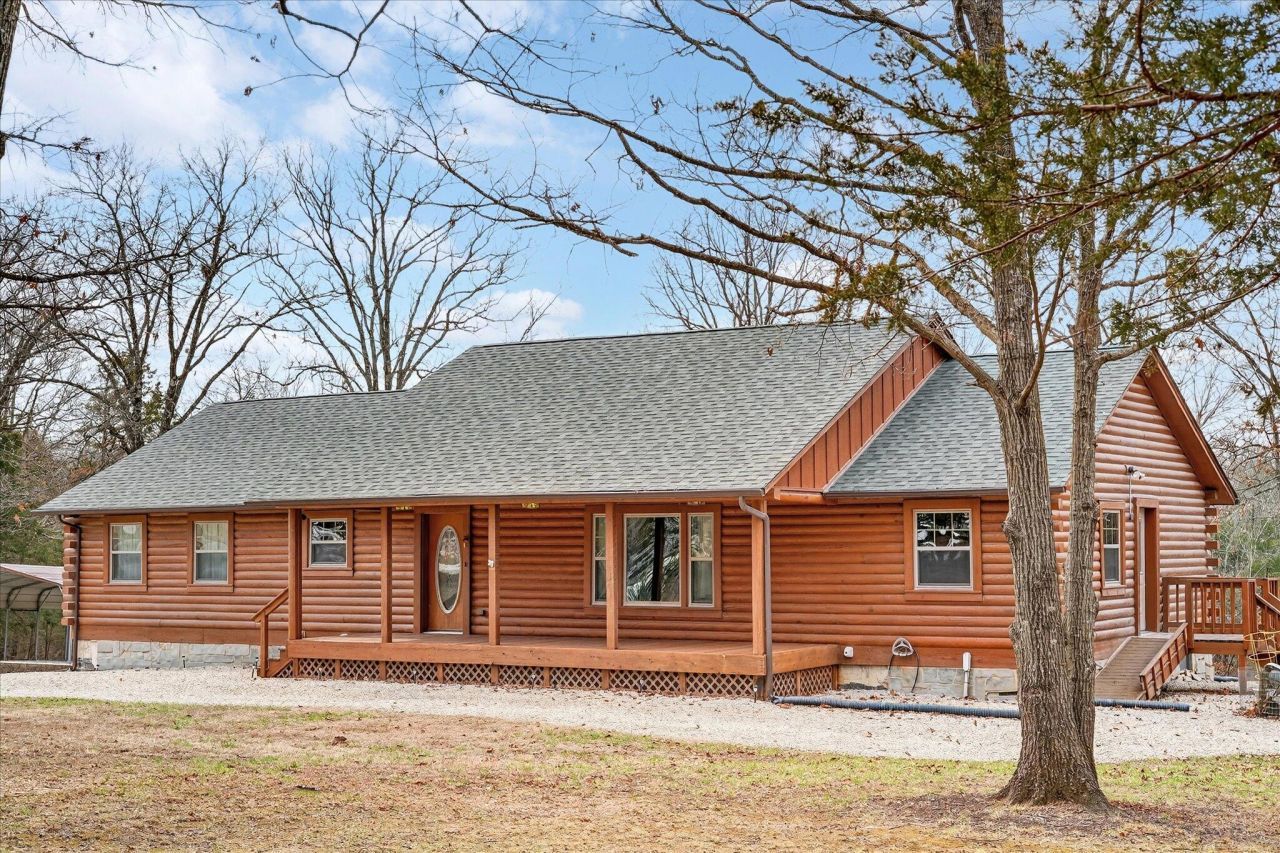 Tucked into the timber on nearly 7 acres, this log cabin sits just two minutes from lake access at Pomme de Terre Lake. The setting is quiet and natural with established trails through the woods and wildlife often being the only neighbor off the back porch.The home offers three bedrooms and two baths with the rustic character expected from a true log cabin. The main living area is open and functional, combining the living room, dining area, and kitchen into one space designed for everyday interaction and easy entertaining. Cathedral ceilings follow the roofline and bring in natural light from multiple sides, giving the home an open feel while still maintaining the warmth of the log interior. The layout works well for both full time living and lake area use.The walk out basement provides additional flexibility and includes a one car garage along with space that could be finished for added living area, storage, or hobby use depending on the next owner's needs.The acreage is primarily wooded with mature timber and established trails that make it easy to explore and enjoy the property. The setting provides privacy while still being only minutes from Pomme de Terre Lake access. Whether used as a full time home or a lake area retreat, this property offers the quiet wooded setting many buyers look for in the Ozarks.