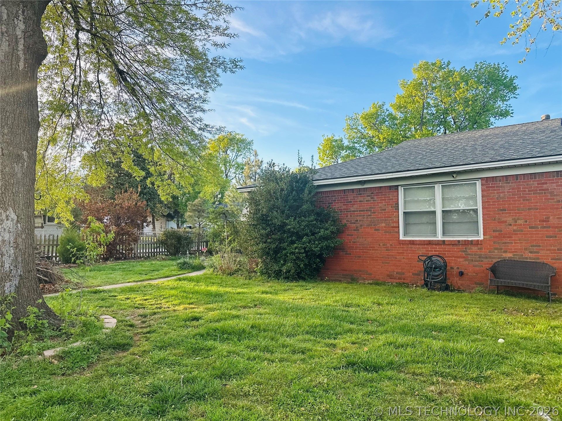 Step into timeless style and modern comfort in this beautifully updated mid-century home, ideally located in the heart of Mayo Meadow-just minutes from the Expo Center and all that Tulsa has to offer. This spacious 3-bedroom, 2-bath home features two inviting living areas that seamlessly flow together, creating the perfect space for both relaxing and entertaining. One living room is anchored by a cozy wood-burning fireplace and lined with built-in bookshelves, adding warmth and character throughout. A formal dining room connects effortlessly to the fully remodeled kitchen, where design meets function. Striking blue cabinetry is paired with granite countertops and a copper farmhouse sink, creating a space that's as stylish as it is practical. The primary suite offers a private retreat with its own bathroom and walk-in closet. Secondary bedrooms are generously sized, including one with a full wall of custom built-in shelving. The hall bathroom has been thoughtfully updated while preserving the home's mid-century charm. Out back, enjoy your own private oasis with a large gunite swimming pool and an expansive yard-perfect for entertaining, gardening, or simply unwinding. Mature trees and lush landscaping enhance the sense of privacy, while the front yard with a classic picket fence adds curb appeal and charm. Additional features include a two-car attached garage, covered carport, and an extra driveway leading to the backyard-ideal for additional parking, a boat, or recreational vehicles. Also, there's a generator for peace of mind if Oklahoma storms leave you without power. Catch a glimpse of Tulsa's iconic Golden Driller from your driveway while enjoying a peaceful setting a few blocks away. Located in the highly desirable Mayo Meadow neighborhood, this home blends location, character, and livability in one exceptional package. Don't miss your chance to own a true Tulsa classic with modern updates and unforgettable style.