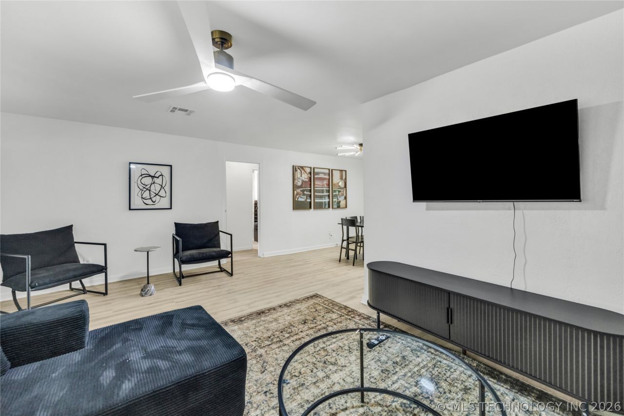 Fully updated Midtown Tulsa home offering flexibility for both owner-occupants and investors. The home was extensively updated in 2022 with interior paint, new flooring, updated bathroom, quartz countertops, and soft-close cabinetry. Major mechanical improvements include a new roof installed in September 2025, a new hot water tank in November 2025, and the main sewer line replaced in 2023. From August through December the home generated strong Airbnb income and consistent occupancy. Because bookings made showings difficult, the property was temporarily removed from Airbnb and is now being relisted for sale. The home is available to purchase fully furnished, creating an easy turnkey opportunity for buyers seeking a short-term rental, mid-term rental, or a move-in ready primary residence. Listing agent has ownership interest in property.