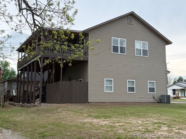 Welcome home! This beautifully maintained property offers the perfect blend of modern updates and cozy character. Whether you are looking for a primary residence or a high-potential investment, this home delivers on every level. Located in the city of Eufaula, Oklahoma, it offers an amazing lake view from the newly surfaced and covered top deck. This property offers two living spaces perfect for multi-family or income-producing. The main house is a three-bedroom, three-bath, and partially privacy-fenced backyard. The secondary living space is 1,050 sq ft, two-bedroom, one-bath with open living and kitchen that opens out to a 14x30sq ft covered deck. It is situated above an oversized three-car garage that is perfect for storing all your lake toys! The downstairs patio offers lake view and a private hot tub. This is a must-see property! Make your appointment today for a private showing.