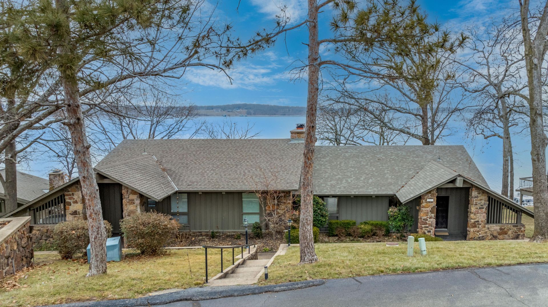 Tucked along the tranquil shoreline of Grand Lake of the Cherokees, this lakefront retreat invites you into a life of comfort, charm, and unforgettable views. Nestled within the coveted Shangri La Estates, tree-lined streets wind gracefully beside the renowned Shangri la Resort Golf Course, a beautiful scene for everyday living. Step inside, where the main level unfolds into a bright and welcoming open concept living, dining, and kitchen space, perfect for gathering and making memories. A full guest bath and convenient entry closet add thoughtfully functionality. The home beautifully blends timeless character with modern updates., featuring native rock accents, solid wood beams, plank wood ceilings, and elegant wood look tile flooring throughout. The heart of the home is a nicely appointed kitchen with an extended serving bar flows effortlessly onto a spacious outdoor deck and grilling area. Here the evenings are best spent entertaining under the open sky or simply savoring the peaceful lake views, shaded afternoons, and sunrise beauty. Downstairs, a private retreat awaits with two primary ensuite bedrooms, along with a versatile third living space, office or bedroom also complete with its own ensuite bath. A hall laundry closet with stackable washer and dryer adds ease and convenience. Life in Shangri La Estates extends beyond the home offering a vibrant lifestyle with access to a clubhouse, swimming pool, and golf cart friendly paths the connect you to the best of Shangri La Resort including golf, marina access, dining, tennis, and more. This is more than a home its a lakeside chapter waiting to be written with your name. Schedule your private showing and experience the story for yourself.