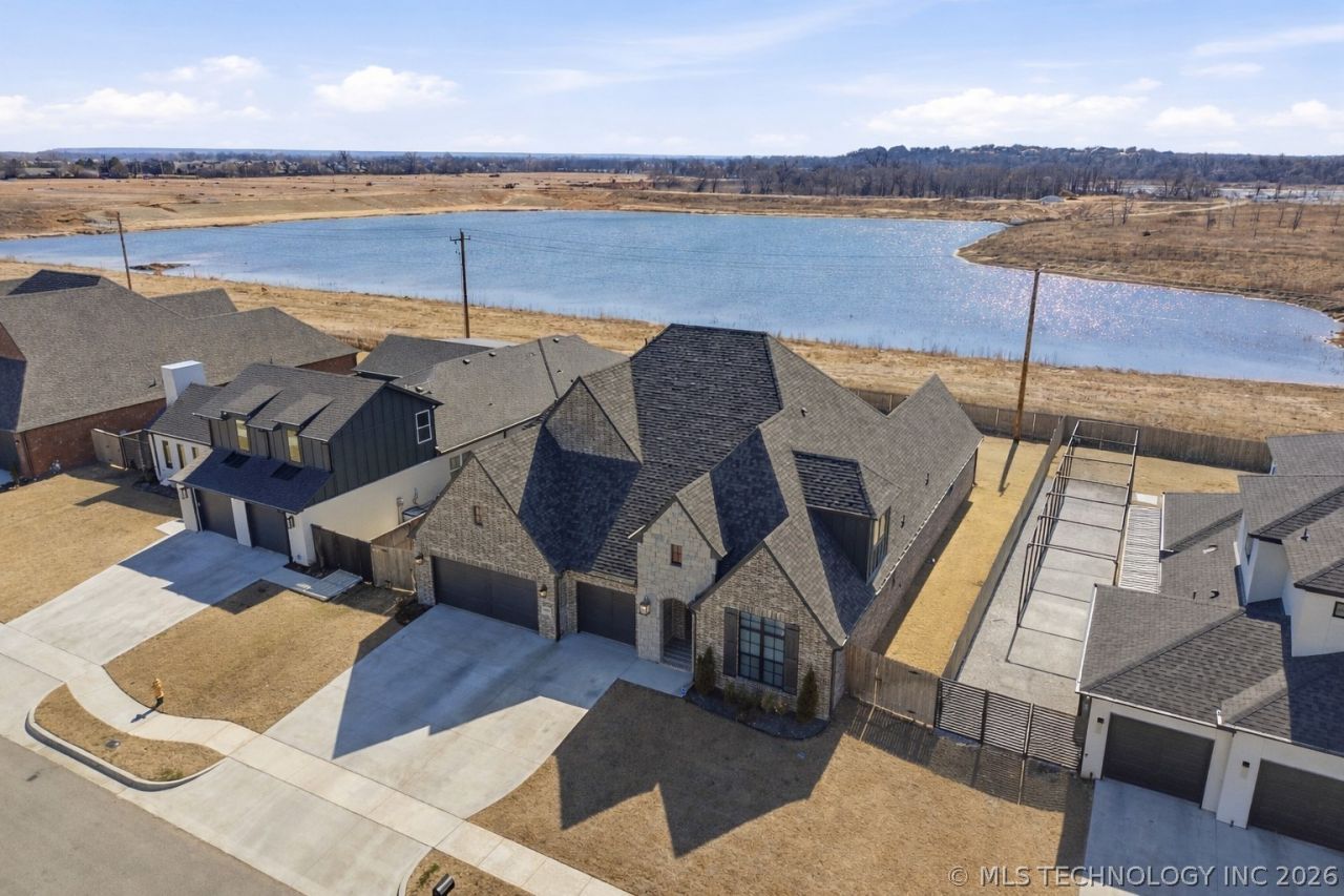Superbly maintained newer construction in Bixby Schools with POND VIEWS. This Executive Homes build offers 4 bedrooms plus a dedicated office AND a versatile downstairs bonus room (which can be used for an additional bedrooms as well). Home has 3.5 bathrooms. The downstairs layout includes a private mother-in-law or guest suite with a full bathroom, providing ideal flexibility for multi-generational living or extended guests. The main living area features custom painted shelving, and a striking floor-to-ceiling fireplace. The kitchen showcases full-height cabinetry and flows seamlessly into the living space, perfect for both everyday living and entertaining. Additional features include whole-home WiFi, 8 Ethernet outlets, full-home guttering, a covered patio, and a fully fenced backyard with two gates.. Built in 2023, this home blends modern construction, thoughtful design, and a prime Bixby location. Move-in ready with space, flexibility, and functionality throughout.