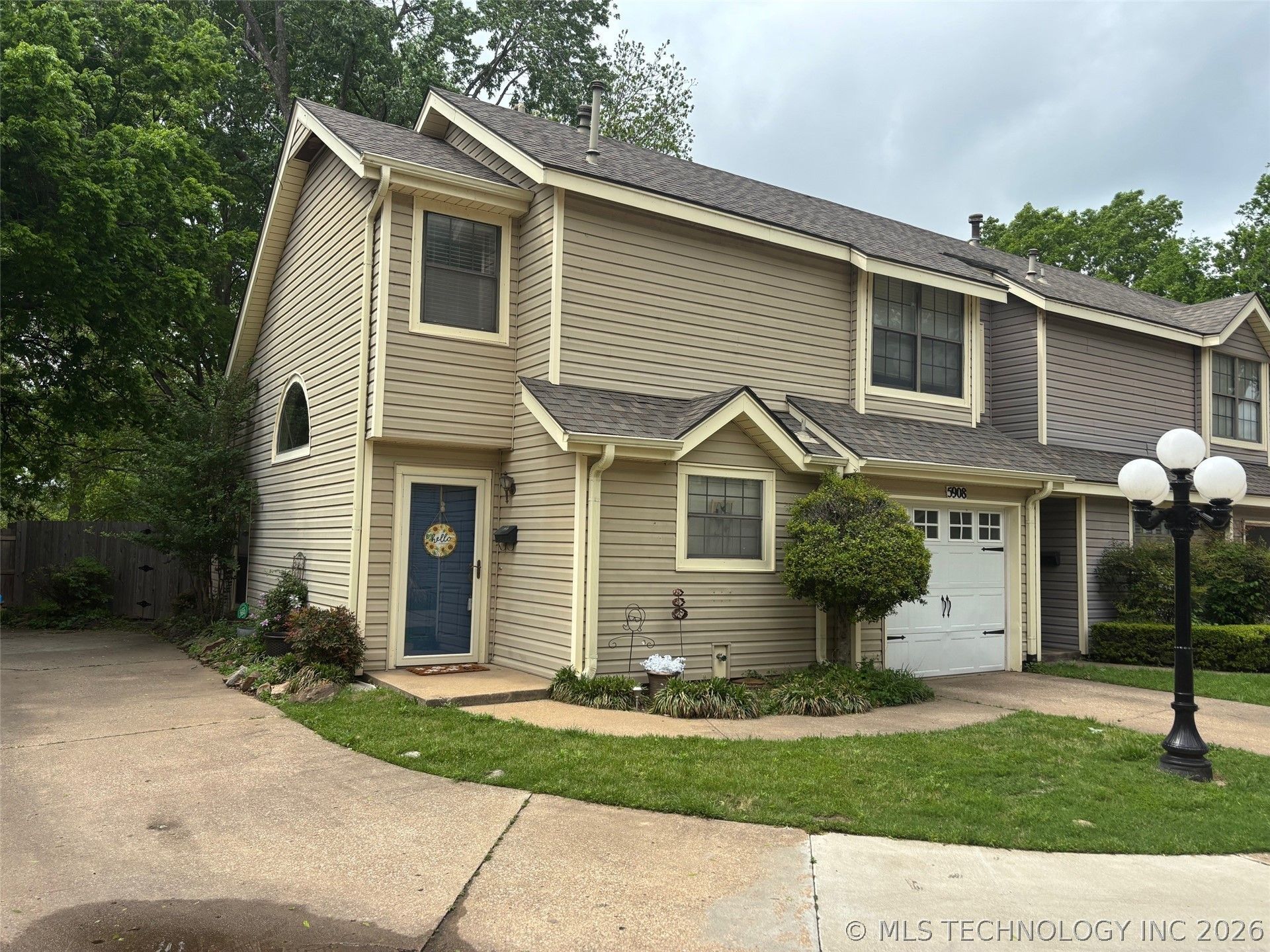 Lovely townhouse on a corner lot. Cozy backyard w/ two decks (one covered). Nice street appeal w/ level entry to townhouse. All new kitchen appliances. New paint. Living room has a nice gas log fireplace for those cold Oklahoma nights. Ceiling fans in the primary bedroom and living room. Primary bedroom and full bath upstairs w/ washer and dryer handy. One entrance to the Pennwood Park neighborhood w/ privacy fencing all around. Townhouse is in great condition. There is a working HOA w/ rules and bylaws. A copy of the Rules and Bylaws are available for review. Come see this gem and make it your own.