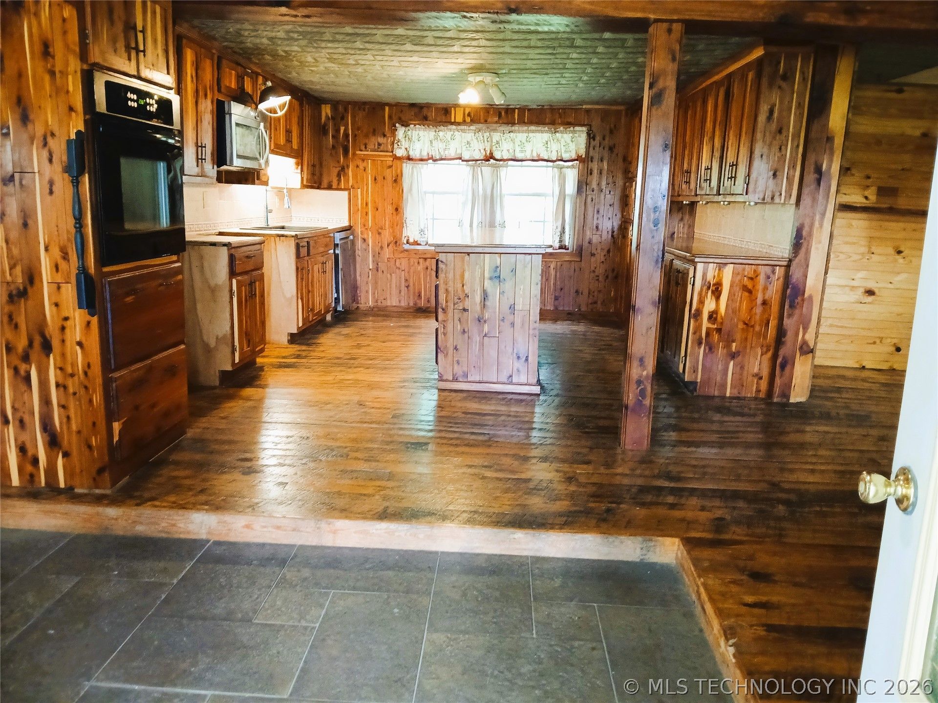 Great homestead property, Generational homestead on large corner lot in South West Nowata. Large log home on multiple lots with nice size living room with nook, lovely kitchen with island, custom cedar cabinets, tin ceiling, breakfast nook and dining room areas, 2 bedrooms (could easily be 3 with added closet), 2 full baths with walk-in showers, gorgeous hardwood floors, comfy gas fireplace unit, relax under the cozy covered porches, newer roof, big yard is perfect for gardening, detached 2 car garage and mow shed, basketball court, tons of parking areas, shade trees and more!