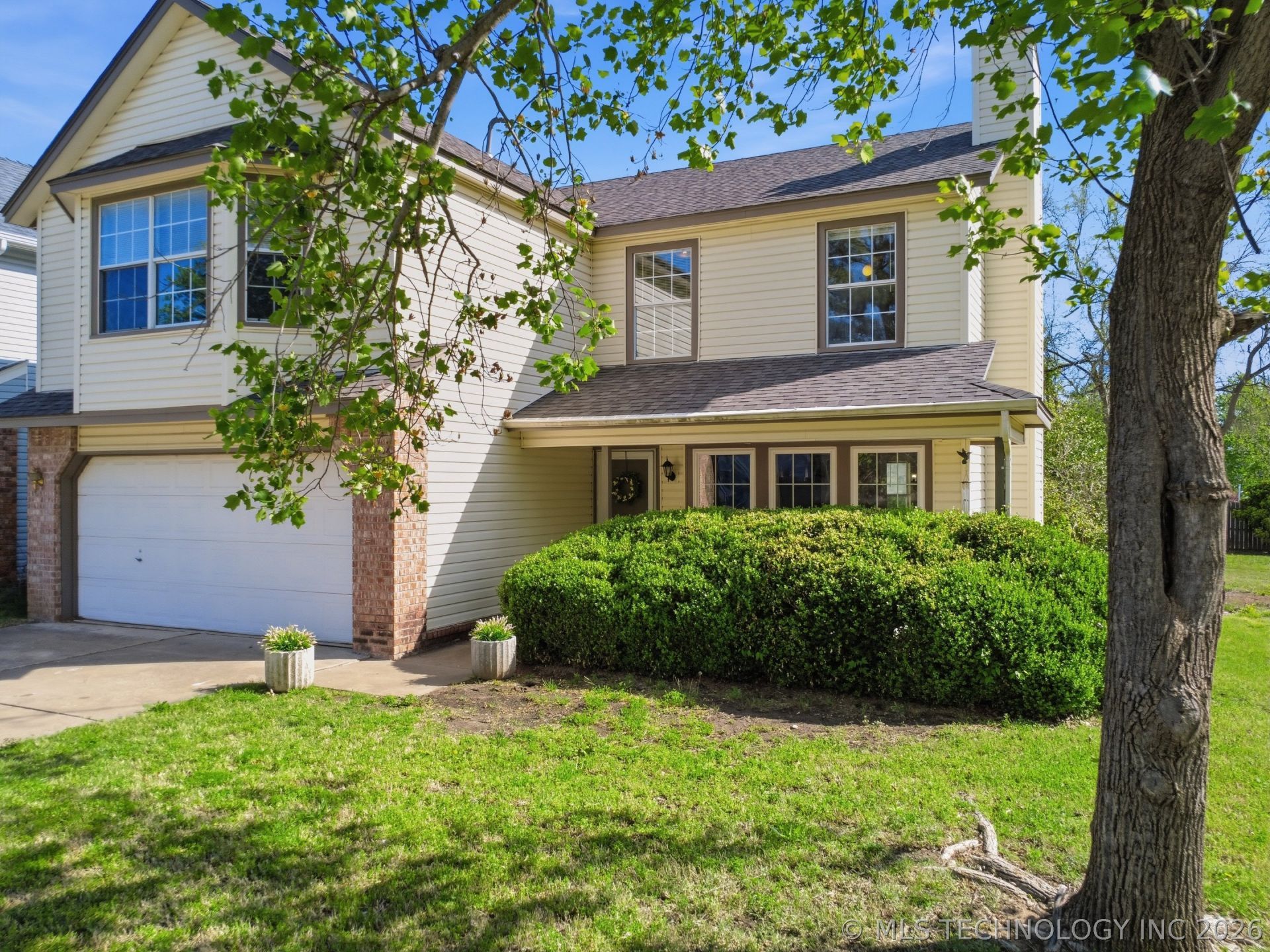 Welcome home! This spacious and inviting home is designed with family living in mind and offers the perfect blend of comfort, functionality, and location. Featuring 4 bedrooms plus an office, 2 living areas, and 2 full baths with a convenient half bath, there is room for everyone to spread out and enjoy. The bright and functional kitchen offers abundant cabinet space, a pantry, and a breakfast bar, making it ideal for busy mornings, homework time, or gathering with friends and family. Just off the kitchen and formal living room with a cozy fireplace is a dining area perfect for family dinners or entertaining. A separate family room/den provides the perfect space for movie nights, a playroom, or a quiet retreat. Upstairs you'll find all four bedrooms along with the office, creating a private and peaceful space for work, study, or relaxation. Step outside to enjoy the covered front porch or relax on the patio, ideal for morning coffee, evening grilling, or watching the kids play. Located in Jenks Schools and conveniently situated less than 15 minutes from Tulsa Hills, The Gathering Place, and Tulsa Premium Outlet Mall, you'll love the easy access to shopping, dining, and entertainment. Plus, nearby walking trails and a neighborhood park make it easy to enjoy the outdoors. Don't miss your chance to make this wonderful family home yours!