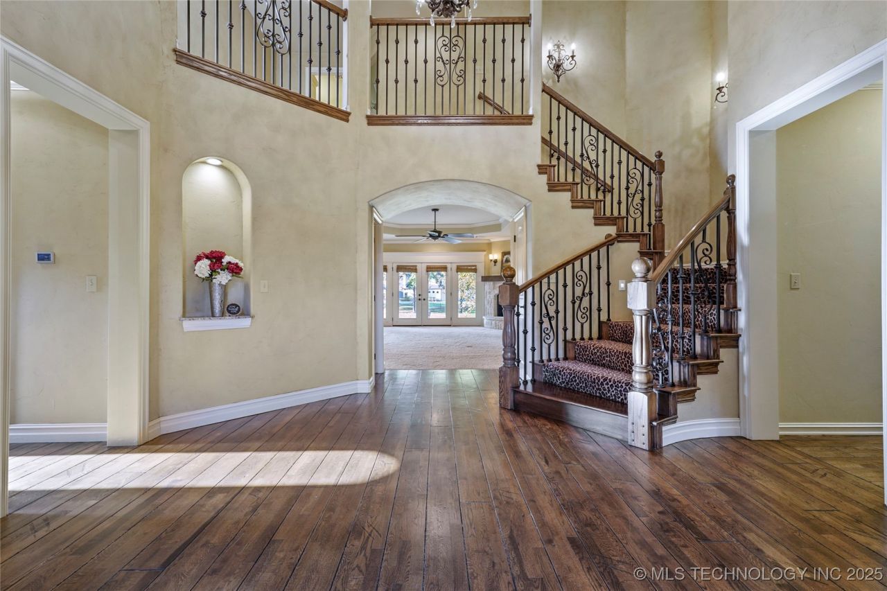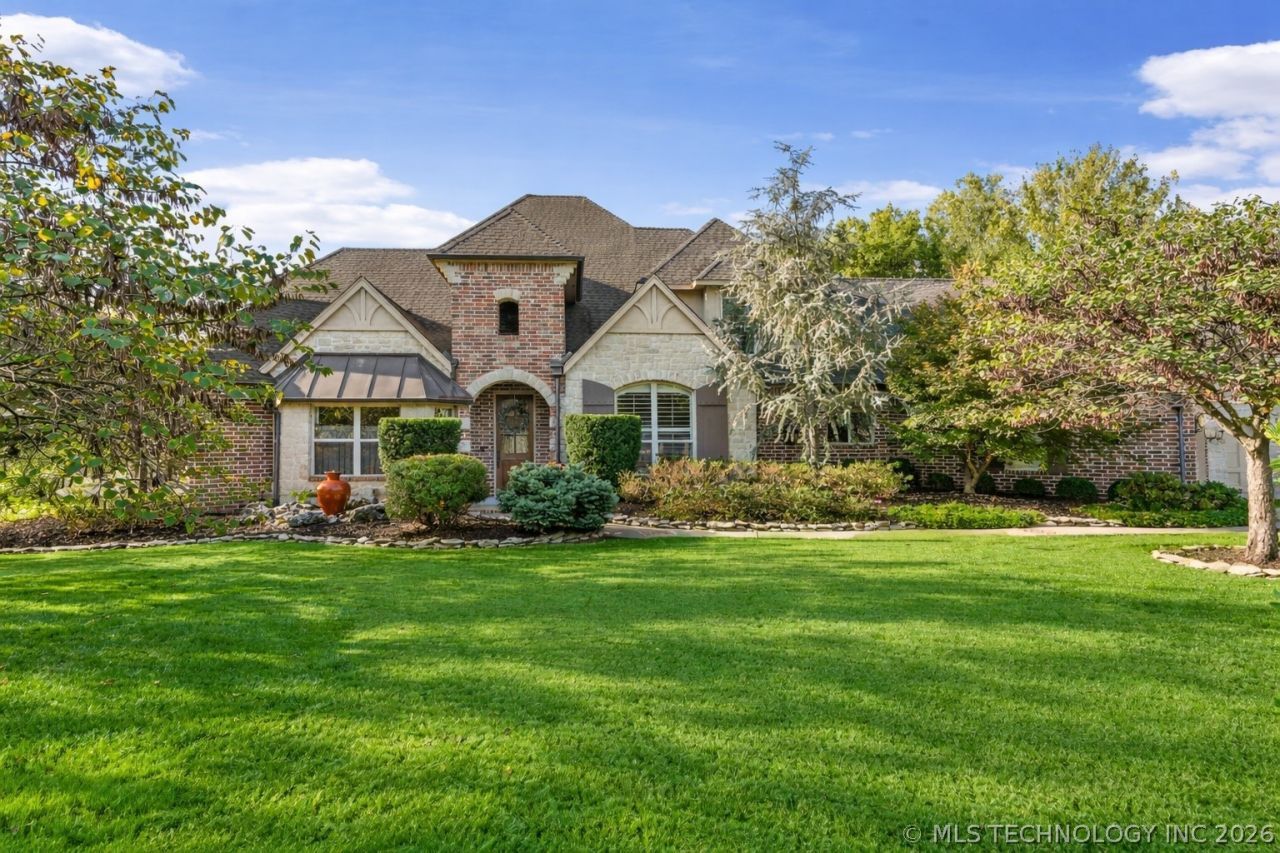 **Experience The Pondview Estate - Luxury Living on a Private Pond Lot! ** Stunning custom home on a beautifully landscaped 1.3-acre pond lot in a quiet cul-de-sac. This smart home features high-end finishes throughout, a spacious and functional floor plan, private formal dining, dedicated study, grand entry foyer, and a walk-in pantry. The downstairs primary suite and open living areas offer serene pond views. Upstairs offers a spacious game/media room with a wet bar, and two oversized bedrooms with the large 4th bedroom pre-plumbed for an additional bath. Abundant storage with walk-out attic access. Exterior highlights include a newer roof (Nov 2023) with lifetime-warranty, smart sprinkler system connected to a weather station, and pre-wiring for a hot tub. Quick access to the Creek Turnpike and Highway 51, puts you just minutes from Broken Arrow and Tulsa. Shopping, restaurants, golf courses, parks, trails, medical centers, and the Rose District are all within a 5-12 mile radius. Peaceful, private, and effortlessly refined-this is a lifestyle you'll truly love.