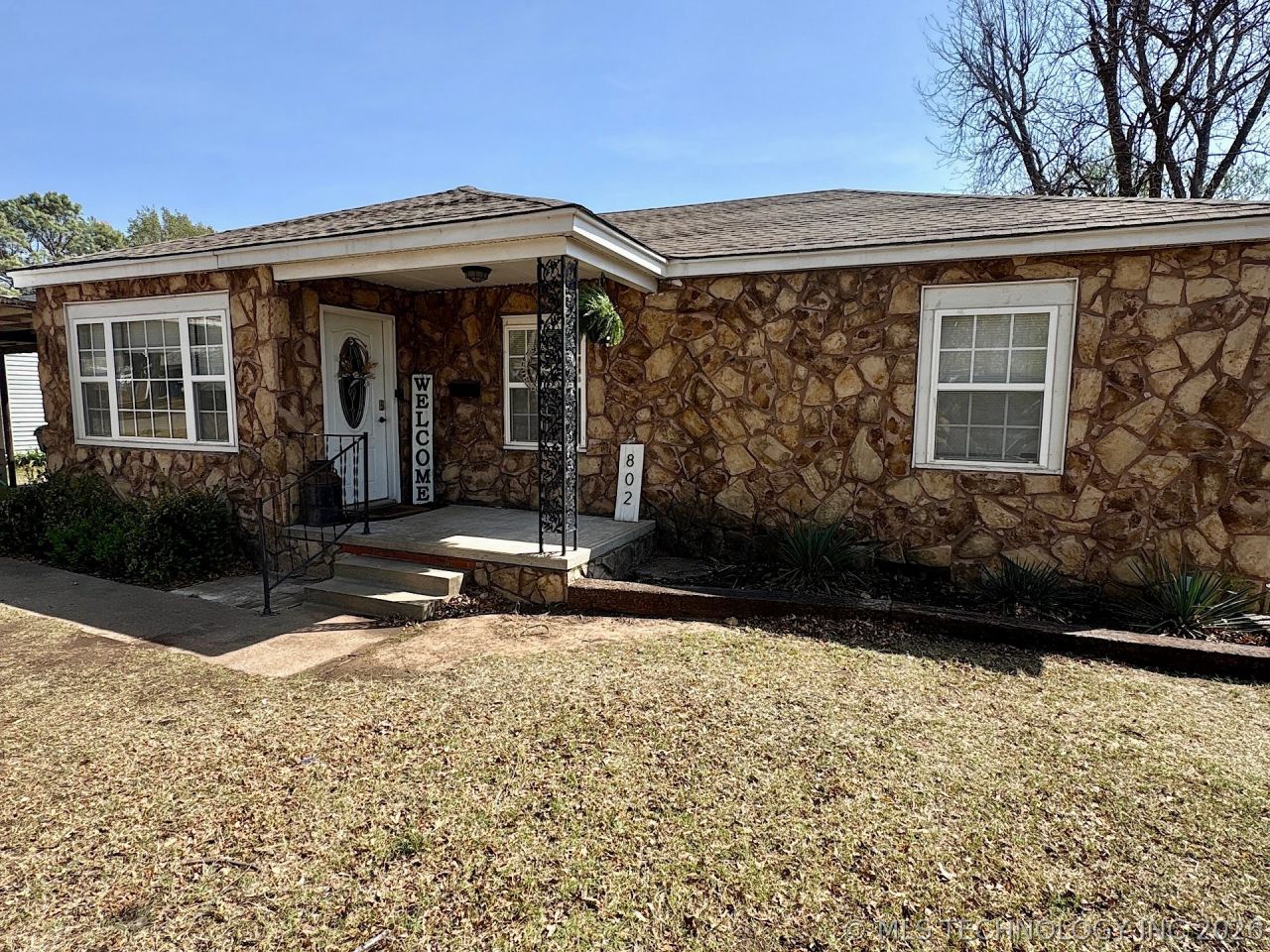 Welcome to this well-maintained stone home located at 802 S Howerton Ave in Cushing, Oklahoma where classic charm meets everyday comfort. This inviting 3-bedroom, 2-bath residence offers character, space, and versatile living options. The timeless stone exterior creates striking curb appeal, while the cozy covered front porch is the perfect place to enjoy your morning coffee or unwind in the evening. Inside, you will appreciate the spacious layout designed for comfortable living. In addition to the main living area, a generous bonus room provides endless possibilities - ideal as a second living space, home office, exercise room, or man cave. Three well sized bedrooms and two bathrooms ensure comfort and convenience for family and guests alike. The kitchen features an abundance of cabinetry, beautiful butcher block countertops, and an open flow into the dining room making it perfect for both everyday meals and entertaining. Step outside to the expansive backyard, where a covered patio creates the perfect setting for grilling and socializing with family and friends. This property also includes a convenient storage shed, ideal for lawn equipment, tools, and additional outdoor storage needs. The attached carport provides convenient covered parking an additional protection from the elements. Located in a quiet area of Cushing this home combines classic charm with practical amenities- making it a wonderful place to call home. Schedule your private showing today!