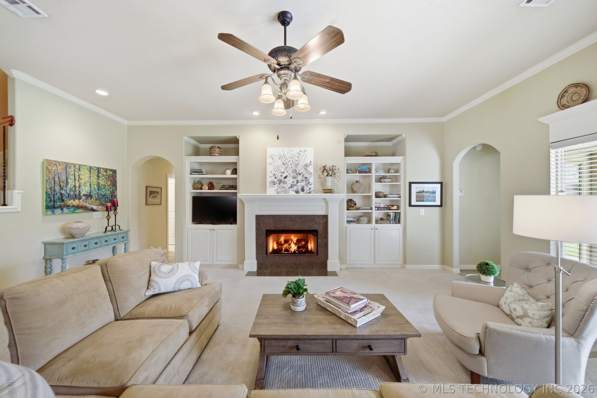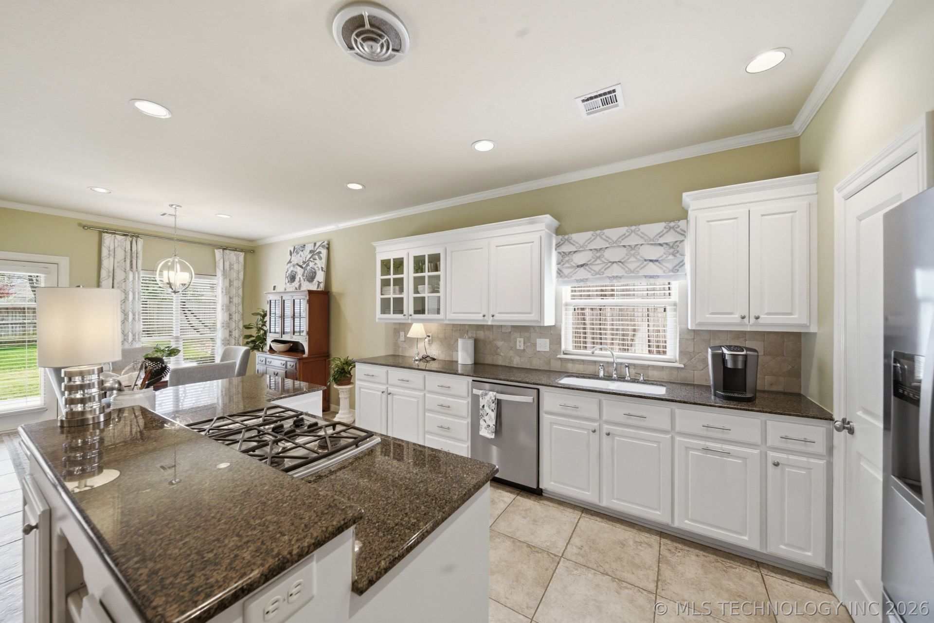 Back On Market--Buyer's financing fell! Perfect Floor Plan & Room for Everything In Bixby North. This outstanding brick two-story checks all the boxes: 3 car garage, main floor primary suite, PLUS 2nd Bed/Bath on First Floor. Gas cooktop island kitchen and breakfast nook is open to living room with fireplace. Main floor also has a private office with French doors, formal dining room. Second Floor: big game room with wall of custom shelving, + two additional bedrooms with full bath. Backyard features a spacious covered patio for lounging and barbecues. Mature landscaping front and back with Japanese Maples & boxwoods. The home is in outstanding condition and immaculately clean. Silver Creek is a small, quiet and very well kept upscale neighborhood with a resident's pool.
